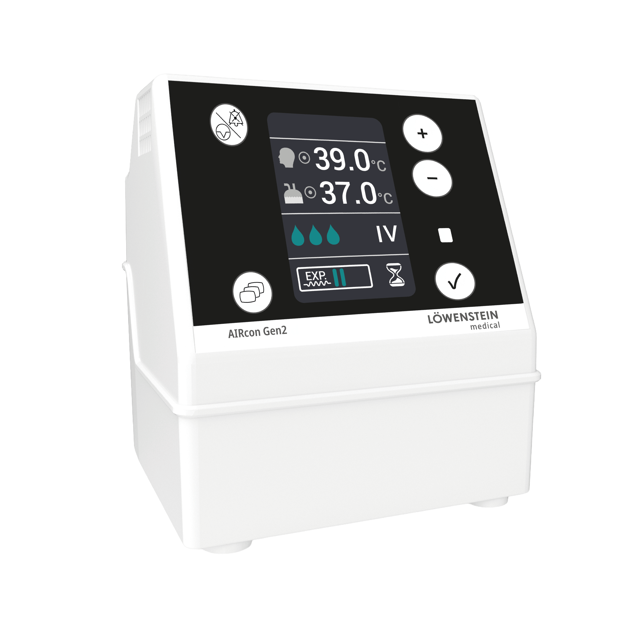 The humidifier offers three operating modes (IV, NIV, FREE), an automatic dimming function, and the option to pause therapy during necessary therapeutic procedures. Thanks to its technical advancements, the AIRcon Gen2 is suitable for virtually any application requi- ring reliable active humidification – from low flow rates for the smallest patients to very high flow rates in adult nasal high‐flow oxygen therapy.